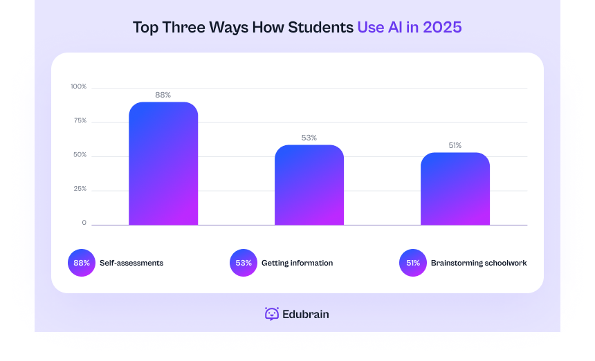 One of the most striking findings: 88% of students now use generative AI specifically for self-assessments.