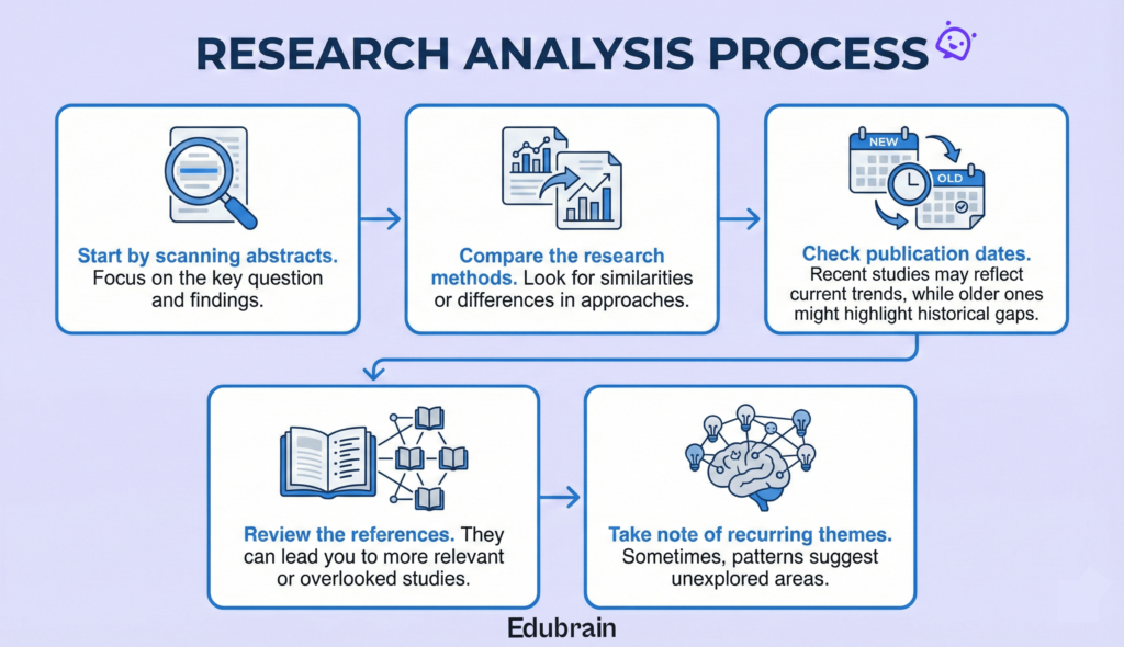 EduBrain’s tools for students to save useful papers, sort ideas by topic, and keep track of authors or journals. This saves time and keeps your research in one place. Instead of trying to remember where you saw something, you can go back and review meta analyses later. A good system makes it easier to spot patterns, repeat results, and missing points. That’s where the gap often shows up.
