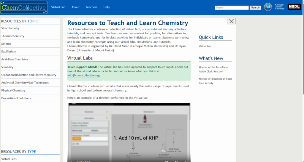 | ChemCollective | Real-world chemistry scenarios | Applying theory to practice |